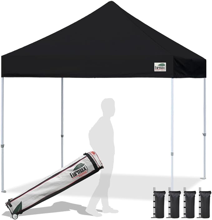 Eurmax USA Standard 10x10ft Patio Pop Up Canopy Tent for Outdoor Events Commercial Instant Canopies with Heavy Duty Roller Bag,Bonus 4 Canopy Sand Bags (Black)