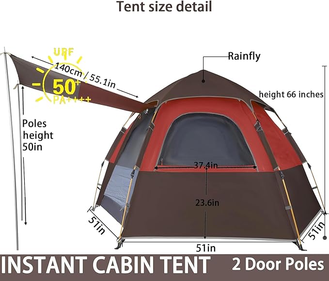 • The tent has a hexagonal base with a side length of 90 inches and a peak height of 66 inches, offering spacious comfort for two adults, making it ideal for 2 adults and 1 child