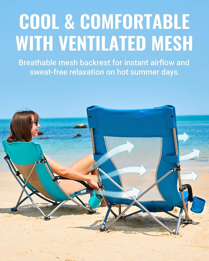 • 【Versatile for All Outdoor Adventures】Stay cool and comfortable even on the hottest days. Our mesh back design allows air to flow freely, keeping your back cool and preventing heat buildup, so you can enjoy the outdoors without discomfort. Perfect for a variety of outdoor activities! Whether you're at the beach, camping, picnicking, or simply relaxing on your lawn, this chair is the ideal choice for comfort and durability.