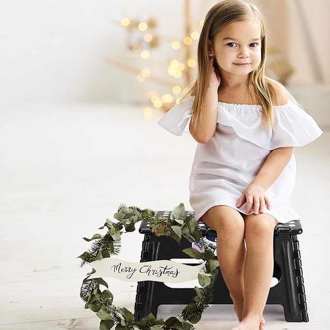 Delxo Folding Step Stool for Kids and Adults,15-Inch Extra Wide 9 Inch Height Heavy Duty Stepping Stool More Safe and Comfortable Non Slip Foldable Step Stool Black
