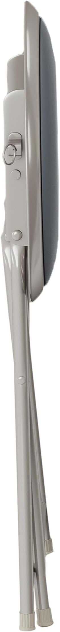 • PRODUCT DETAILS – Materials: PVC and Steel. Dimensions: (L) 12" x (W) 11.75" x (H) 18"; Folded: (L) 12.5" x (W) 2" x (H) 28"; Seat Diameter: 12.5". Weight Capacity: 225lbs. Intended for Indoor Use Only. Color: Gray.