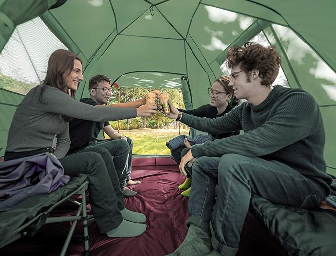 • ✔KAZOO outdoor camping tent provides spacious and waterproof tent with enough features. Setup was fast and easy, it could be done within 3minutes by two persons. This family tent has spacious room (95inchx86inchx57inch) and vestibule to make it perfect as a 4 person tent. It could bring you a perfect experience in your tour for camping, hiking, fishing or relaxing. We try our best to offer you an ideal waterproof 4 person tents for camping.