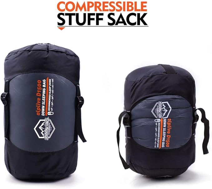 • Special Feature : Alplive D1500 sleeping bag is lightweight, compressible, and insulating for staying comfy on chilly nights., Antisnag YKK zipper works smoothly. Snagless, insulated draft tube., Differentiated hood and neck drawcords simplify adjustments., Insulated face muffler, Anatomic 3D foot box, Contoured mummy hood and flexible baffles at the body’s core all works together to minimize heat loss for greater thermal efficiency., Water-repellent 550-fill-power duck down offers excellent loft and warmth in damp conditions. Alplive D1500 sleeping bag is lightweight, compressible, and insulating for staying comfy on chilly nights., Antisnag YKK zipper works smoothly. Snagless, insulated draft tube., Diff… See more