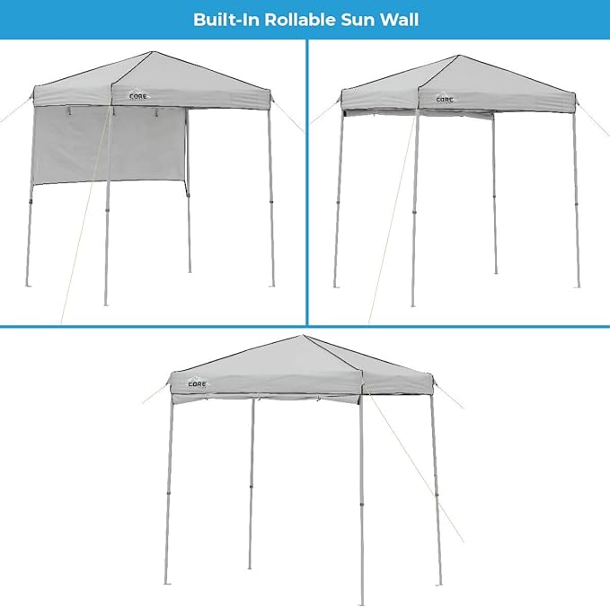 Core Instant Straight Leg Canopy Tent with Adjustable Sun Wall, 6 ft x 4 ft , Gray