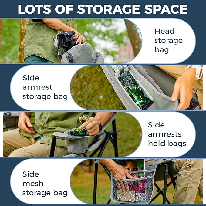 KingCamp Oversized Camping Folding Chair with Lumbar Support, Heavy Duty Ergonomic Padded Arm Chair with Cooler Bag, Cup Holder, Portable for Outdoor