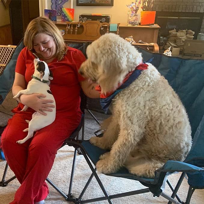 • Outdoor Camping Loveseat Couch: Setting this double camping chair up is effortless and fast. You only have to take camp chair out from the carry bag and spend a few seconds to open it, you can enjoy this supreme comfy camping chair and easily transport to beach, fishing, lawn, concerts and festivals. as well as indoor use. Great seat for 2 people + dog