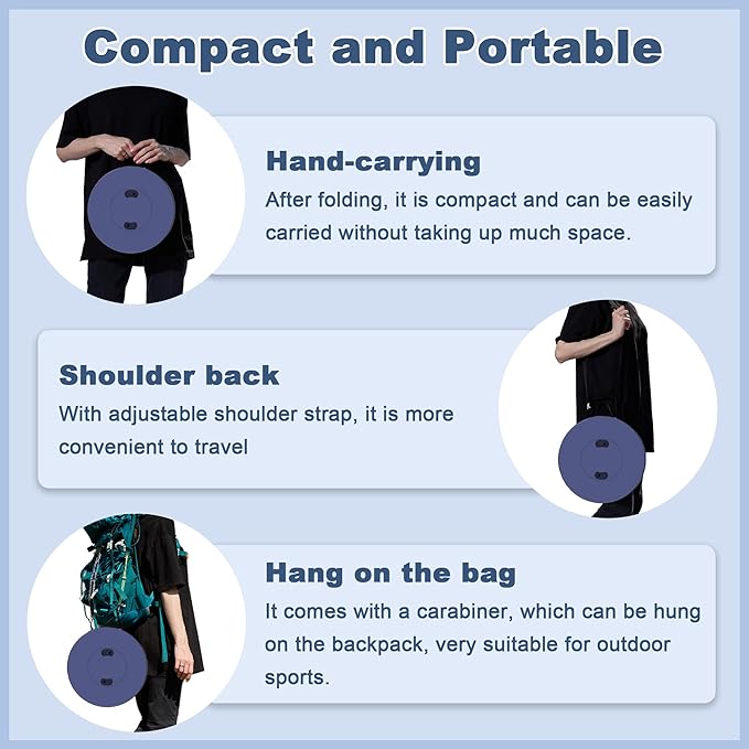 • 【Soft Swivel Seatpad & Carrying Bag】Some small accessories can often bring a better experience to customers. The soft 360° rotatable cushion makes you feel comfortable even if you sit for a long time. The carrying bag is not only easy to carry but also dustproof. In addition, a climbing buckle is included, which can be used to hang the portable telescopic seat on the backpack without taking up the luggage space.