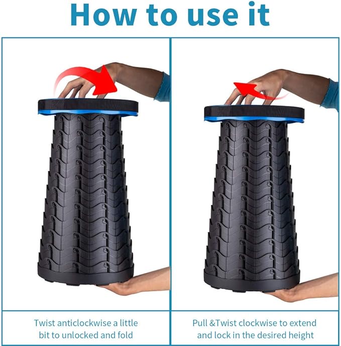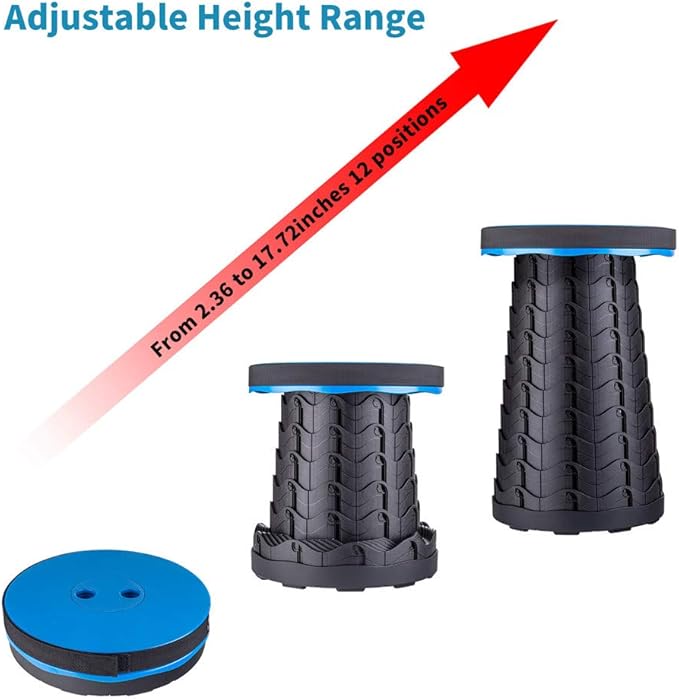 • PORTABLE & LIGHTWEIGHT: This telescopic stool is only 2.54 pounds with dimeter 9.84 inches/250mm. The adjustable strap makes the stool easy to carry in your hand or hanging on your shoulder. Perfect to use for camping, fishing, hiking, hunting, picnic, BBQ. Also can be used in living room, bedroom, bathroom etc