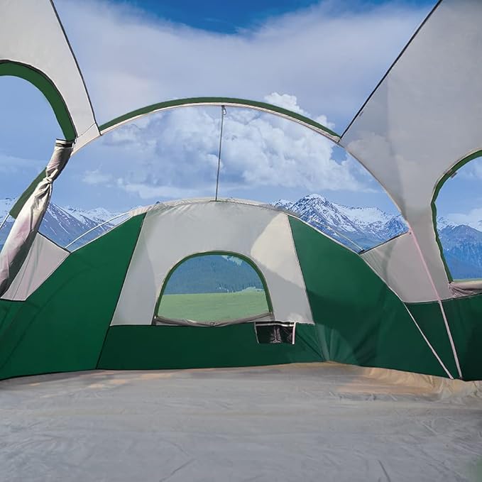 • 【Exceptional Quality and Durability】Crafted from 190T polyester taffeta double - layer fabric with a PU coating, this 10 - man tent boasts a remarkable 1000mm waterproof rating. The doors and windows feature high - quality B3 mesh, effectively keeping mosquitoes out while ensuring excellent ventilation. The thickened PE floor provides an extra layer of waterproof protection, ensuring you stay dry even in damp conditions