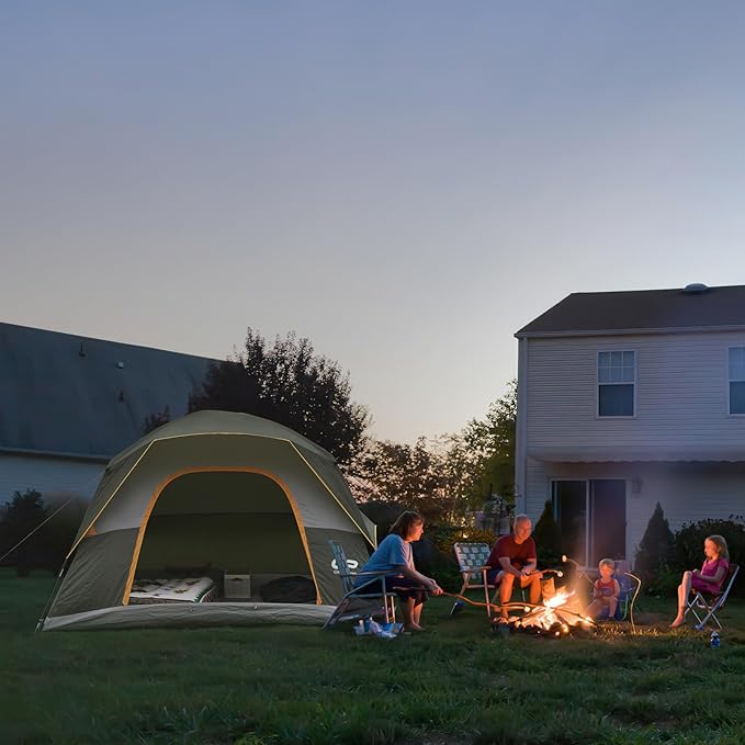 • Spacious 6 Person Tent with 72" Center Height: Our camping tent near-vertical wall design creates generous headroom, allowing most adults to stand comfortably. At 11'x7' with 72" center height, this tents for camping provides ample space for 6 campers with gear