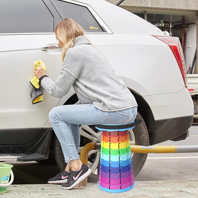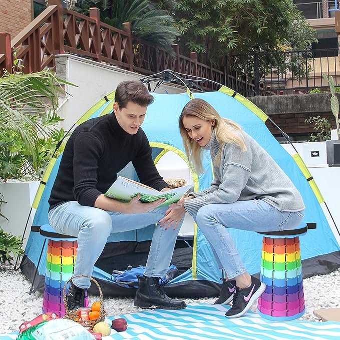 • 🌍【Versatile Use】Ideal for the bedroom, bathroom, kitchen, office, camping, fishing, hiking, BBQ, picnics, queues, gardening, and more. This pop up stool is a practical and stylish portable seat loved by customers across the USA and Canada