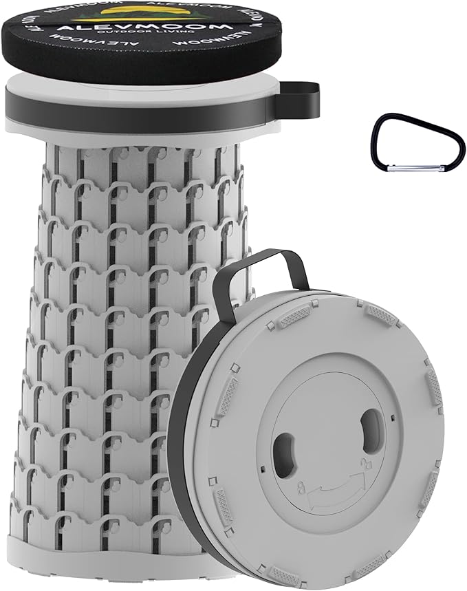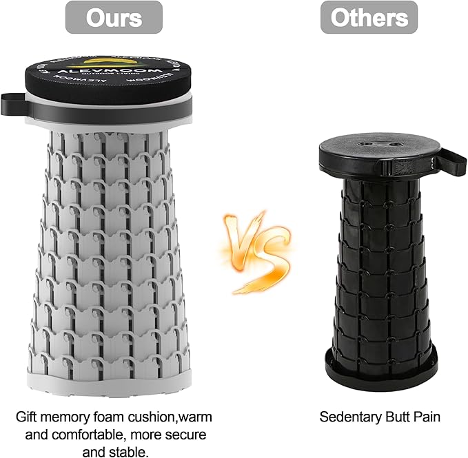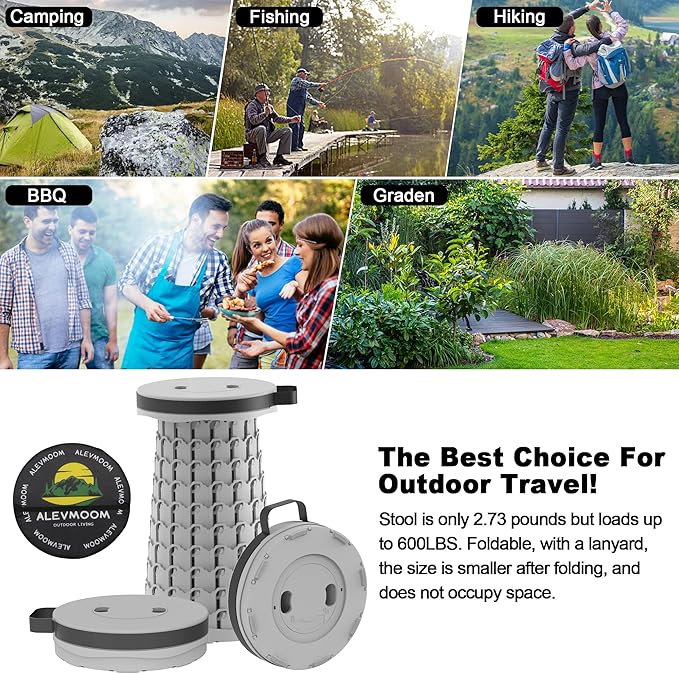 ALEVMOOM Upgraded Portable Collapsible Stool with Cushion, Telescoping Folding Stool for Adults, Lightweight Yet More Sturdy Capacity 600 lbs for Camping Fishing Hiking BBQ
