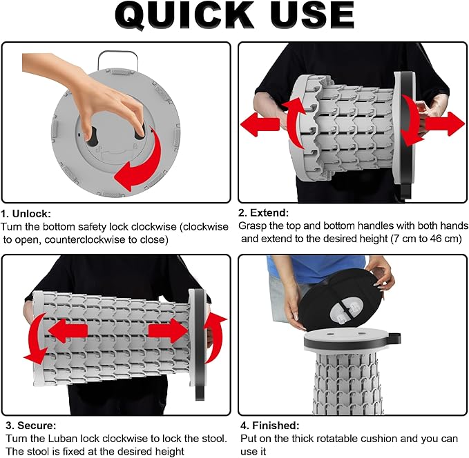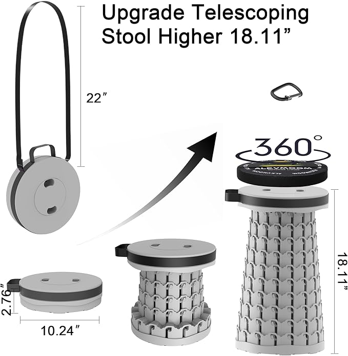 • ✨【US Patent Design】This collapsible stool features a US patented design with a smooth fish-scale structure for seamless opening, closing, and secure locking. Its innovative telescoping mechanism offers adjustable height and user-friendly operation, making it a top choice as a portable folding stool for daily and outdoor use