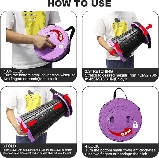 • 【Safaty and Sturdy】 Made of high-strength heavy duty environmental material plastic PP, the cylinder shape structure, tight connecting clasps, and the non-slip base ensure that this collapsable stool will give the stability to provide safe and comfortable sitting. The maximum load capacity is as much as 600Lbs(270kg) ATTENTION: Please sit in the center of the seat. DO NOT sit on the edge of the seat. DO NOT tilt the stool.not sweep down!