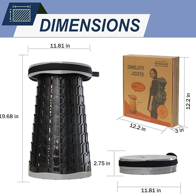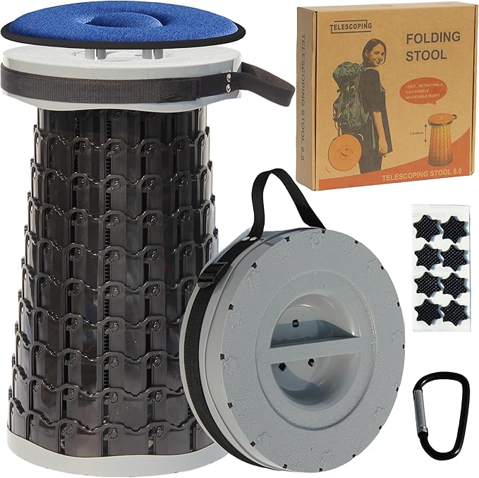 • 【Portable and Lightweight D30/3.5Lbs】The pack size is only 30cm in diameter and weighs just 1.6kg/3.5Lbs,and with Cushion. This retractable stool is portable and lightweight,small and compact to place into luggage or storage.The adjustable strap makes the chair easy to carry in your hand or hanging on your shoulder. Ideal chair for everywhere you go and anytime you want to sit down,add Chair soft Cushion, feeling perfect!