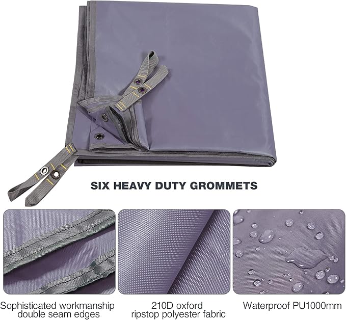 • Reinforced: Tent footprint is equipped with 10 rust proof grommets. Double layer corner tech and heavy duty security stiching to ensure strength and superior quality.