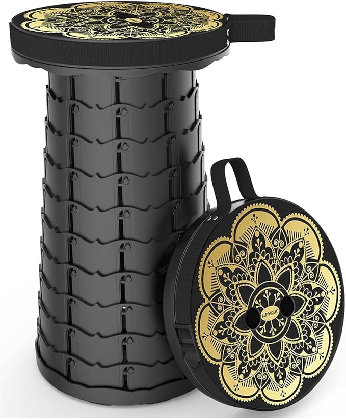 ALEVMOOM Upgraded Portable Collapsible Folding Stool Retractable Telescoping Stool for Adults Sturdy Capacity 440lbs Camping Chair for Outdoor Hiking Garden BBQ