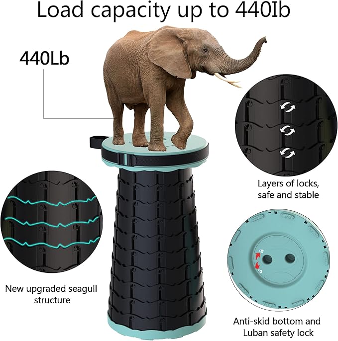 • 【SAFE and STABLE】 Made of environmentally friendly materials, cylindrical structure, tight connection buckles and non-slip base to ensure the stability of the folding stool, providing a safe and comfortable environment for sitting. The maximum load capacity is up to 440 pounds! It's a ideal choice both indoors and outdoors.