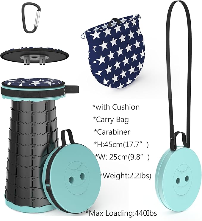 ALEVMOOM Upgraded Folding Stool with Cushion,Portable Collapsible Retractable Stool,Outdoor Chair,Yet More Sturdy Load Capacity 440lbs for Camping Garden Fishing Hiking BBQ with Carry Bag