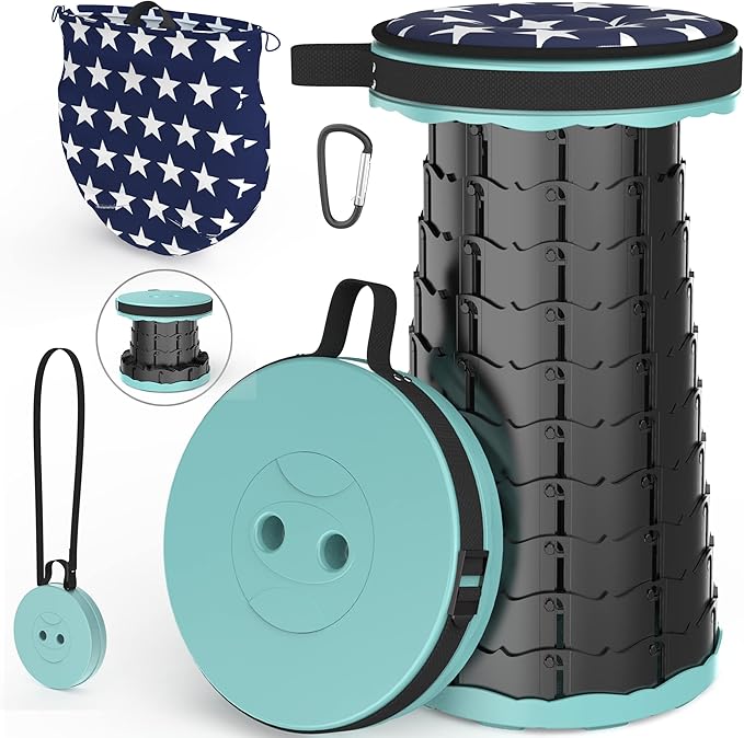 • 【LIGHTWEIGHT and PORTABLE】 This Telescoping Stool is only 9.8" in diameter and the weight is only 2.2Ibs. It can be put in a suitcase or storage box. The adjustable strap makes the chair easy to carry or hang on the shoulder. This ideal chair allows you to sit down anytime, anywhere.