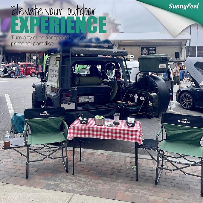 • A Camping Director Chair that is Built for Anywhere: Use it as a camping chair, folding chair, lawn chair, travel chair, beach chair and more. Suitable for outdoor adventures, tailgating, fishing, backpacking, beach, picnic, sport games, car travelling, or just put it in the backyard, cabin, balcony, patio lawn parties. The SunnyFeel camping chair is an essential to add to your camping accessories.