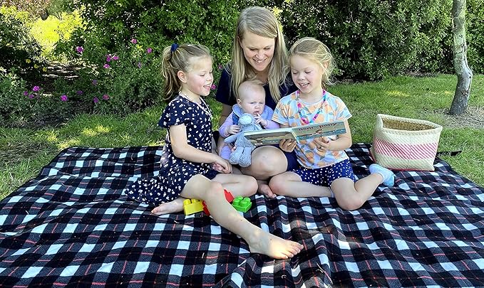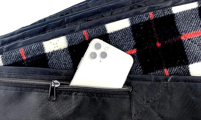 • NEVER FEAR THE WINTER WEATHER AGAIN stay warm and dry in the bleachers while supporting your kids at the football, soccer, hockey, softball, other sports or family event, out in the boat, festival or enjoying the great outdoors; your all purpose blanket has a tough black water and wind resistant polyester backing and black and white check 350 gsm anti-pill fleece to give you the best cosy feel