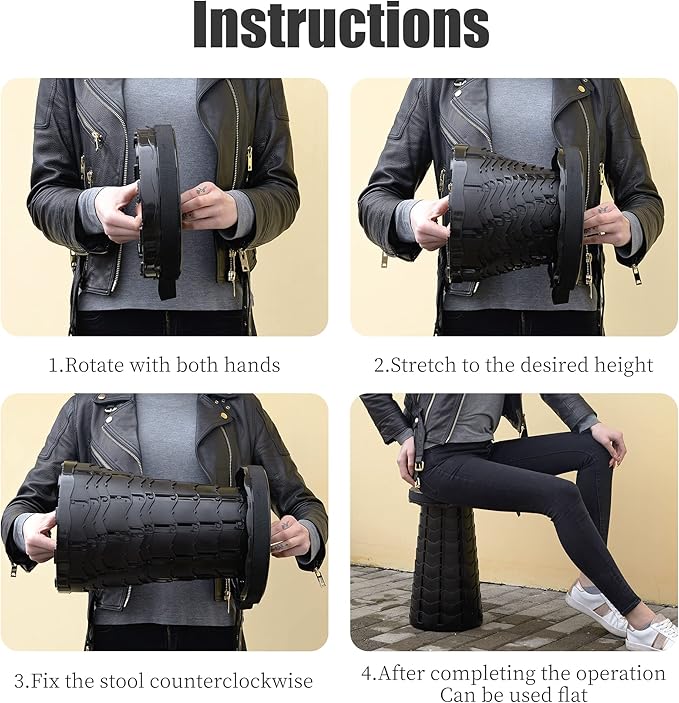 • 【 Adjustable Height】The folding stool is adjustable and it can be set to your desired height within the range of 2.4 to 17. 7inches. This adjustability makes it suitable for most adults use anywhere!