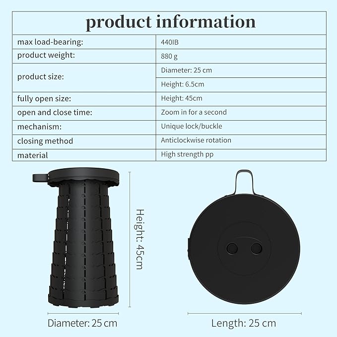 • 【Durable and Sturdy Construction】 Made of high-quality environmentally friendly PP material, our collapsible stool is built to last. It can support up to 440LBS of weight, ensuring stability and safety while in use.