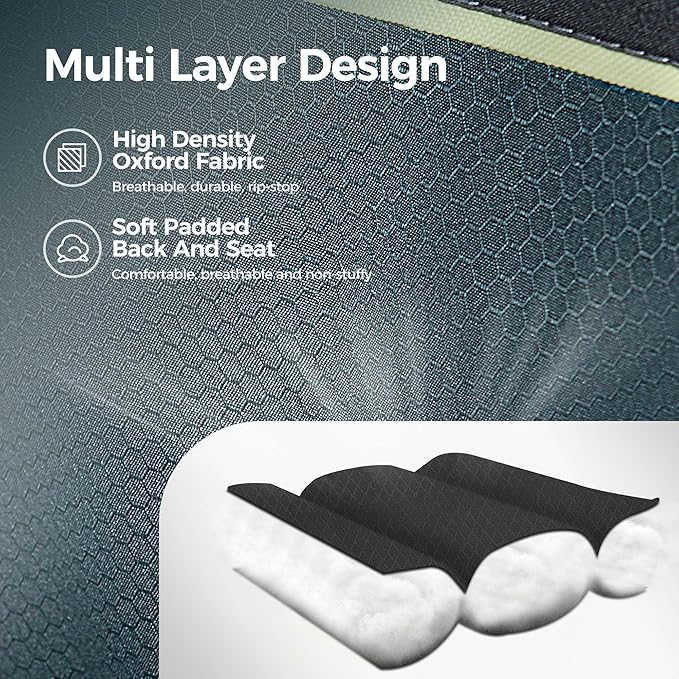 • 【Large Size】 Oversized Camping Folding Chair Size is 25.20" L x 36.61" W x 39.37"H, Weight is 13.2lbs, Large seat area with 600x 300D padded oxford fabric and padded armrest ensure comfort of this chair