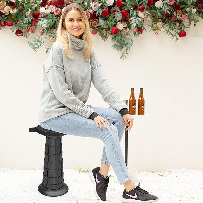 • 【Adjustable Height】The Camping stools is adjustable and it can be set to your desired height within the range of 3.5 to 20.4 inches. This adjustability makes it suitable for most adults or elderly use anywhere!