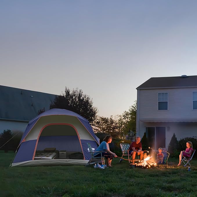 • Spacious 6 Person Tent with 72" Center Height: Our camping tent near-vertical wall design creates generous headroom, allowing most adults to stand comfortably. At 11'x7' with 72" center height, this tents for camping provides ample space for 6 campers with gear