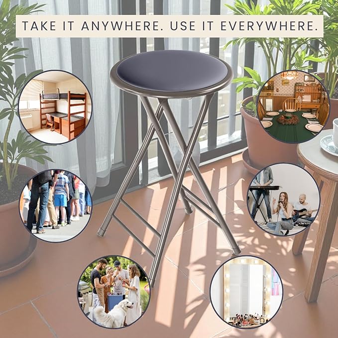 • LIGHTWEIGHT AND PORTABLE – Each folding bar stool weighs less than 6-pounds and is compact enough to take anywhere. Once folded, they are easy to store in a closet or basement, and they will fit in most vehicles for convenient transportation.
