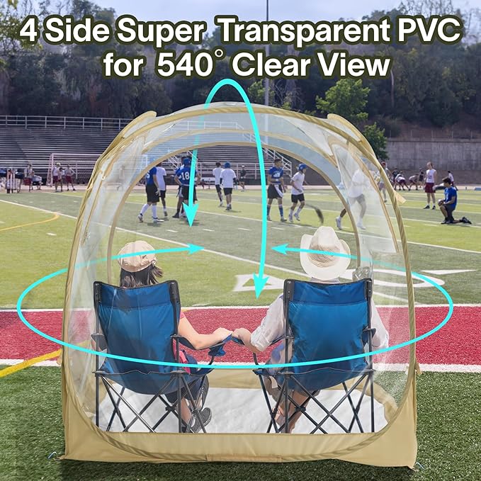 • Innovative Foldable Design with Patent Pending: As the outdoor activities wind down, collapsing and storing your pop-up shelter becomes a breeze. When you follow the folding instructions, our patent-pending folding mechanism ensures you can compact and stow your transparent sports tent.