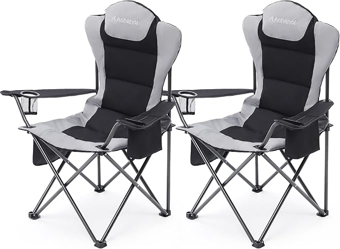 • 🌲【Exclusive Design】Folding camping chairs have 5 degrees of tilt, lasting rely on will not feel tired. Padded and ergonomically designed to support your lumbar so you can enjoy luxuries of comfort.