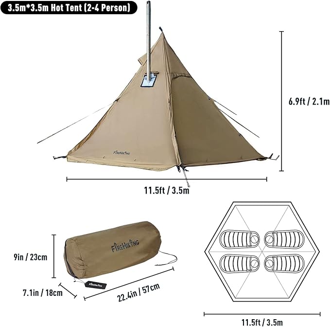 FIREHIKING Camping Hot Tent 2-4 Person Teepee Tent with Stove Jack for Backpacking Hunting