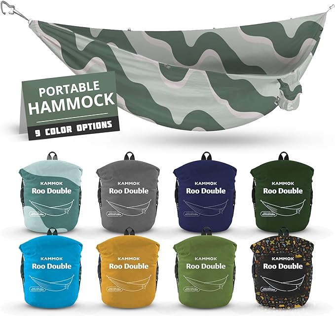 KAMMOK: Roo Double Hammock | Made from Strong & 100% Recycled Water Resistant Ripstop Fabric | Comfortable, Packable, Lightweight (Lifetime Adventure Grade Warranty), Ocean Print