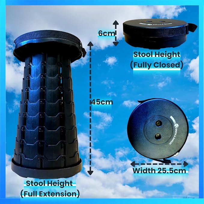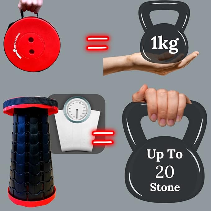• LIGHTWEIGHT: Weighing the same as a bag of sugar and and measuring only 6cm x 25cm when retracted, our stool is very easy to transport wherever you might need it for on-the-go seating