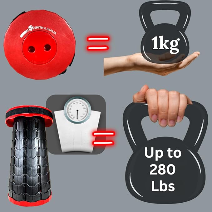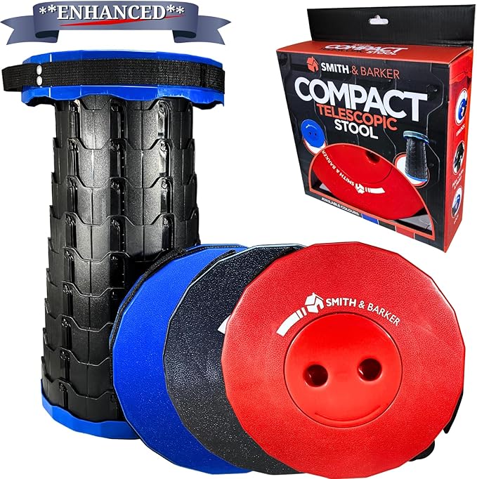 Smith & Barker Upgraded for 2025 Premium Telescopic Folding Stool for Adults and Children Outdoor Indoor Portable Collapsible Foldable Fishing Hiking Camping Festivals Seat (Red)
