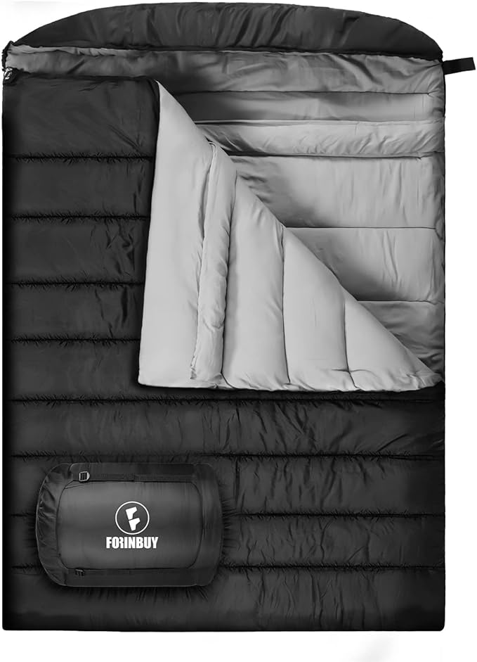 0 Degree Double Sleeping Bag for Adults, 2 Person Cold Weather Queen Size Sleeping Bag for Camping, RV Travel, or Family Outdoors