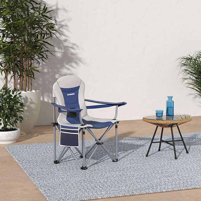 FUNDANGO 2 Packs Oversized Camping Chair with Lumbar Back Support Padded Outdoor Heavy Duty Camping Chair for Adults with Cup Holder, Armrest, Support 300 lbs