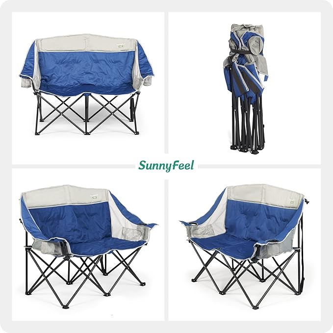 SUNNYFEEL Folding Double Camping Chair, Oversized Loveseat Chair, Heavy Duty Portable/Foldable Lawn Chair with Storage for Outside/Outdoor/Travel/Picnic, Fold Up Camp Chairs for Adults 2 People