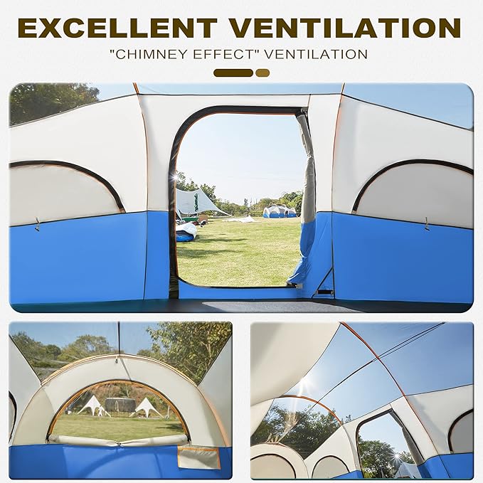 • 【Easily Assembled and Stored】:This family tent is easy to set up, with a straightforward design that allows for quick and effortless assembly by two people in 10 minutes and easily disassembled and packed away into its compact carrying bag for convenient storage