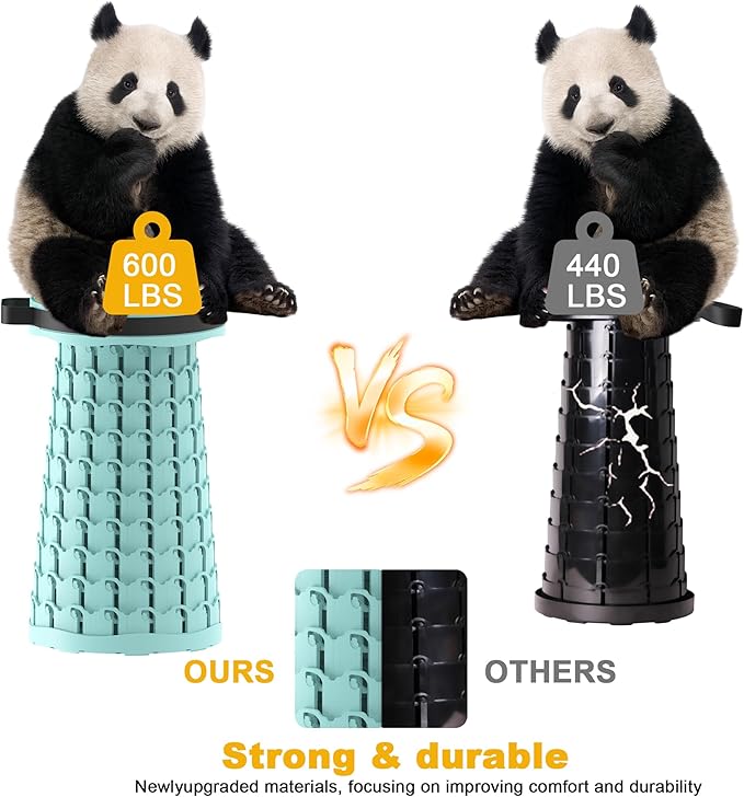 • 【ULTRA STABLE PERFORMANCE】 Upgraded telescoping structure and reinforced clasps give the foldable stool extraordinary stability and rigidity. Our Portable Travel Seat can support up to 600 lbs, far stronger than other similar products. Side support and the capacity of resistance to tilt are also reinforced, which makes the stool more sturdy and durable, ensure safety.