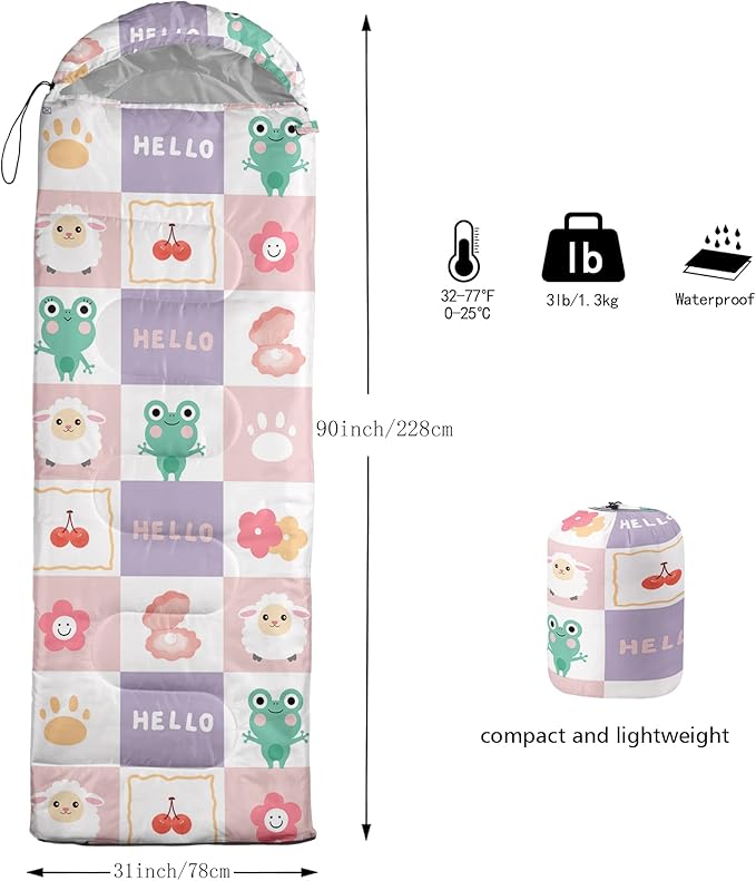 • FITS FOR 3 SEASONS: SIZE - 31 by 90 inches (W x D). Our sleeping bag can be used in 3 seasons with a design temperature of 32℉-77℉(0℃-25℃). These bags also have a weather resistant waterproof design to keep you warm and prevent you from any dampness.