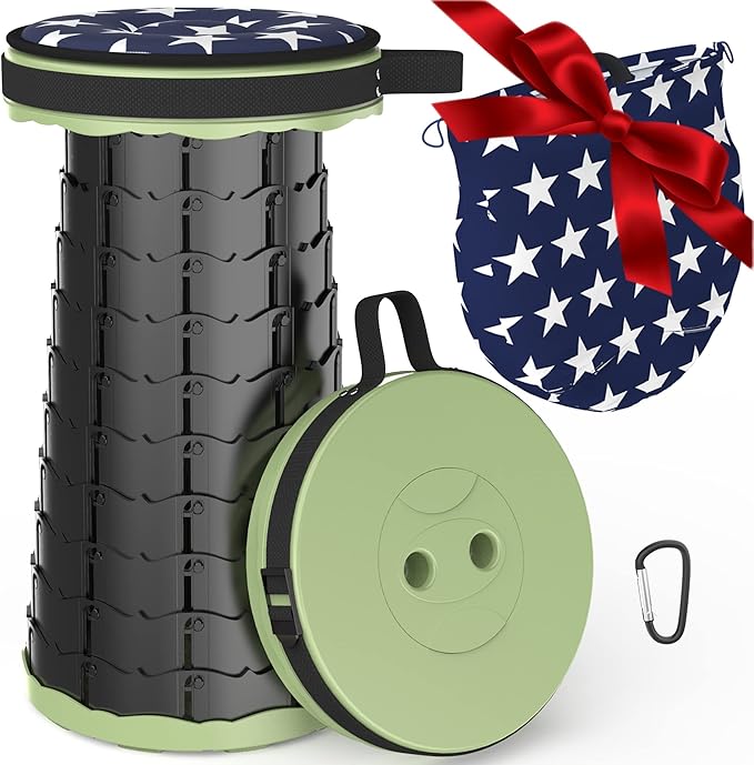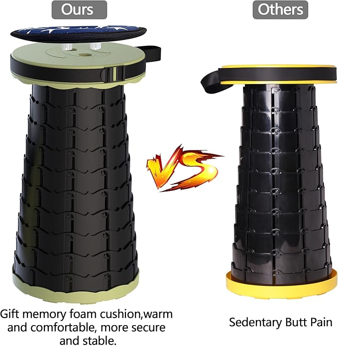 ALEVMOOM Upgraded Collapsible Stool with Cushion & Carry Bag, 500lbs Max Weight Portable Telescoping Stool, More Sturdy Lightweight Retractable Seat Folding Chair for Camping & Outdoors