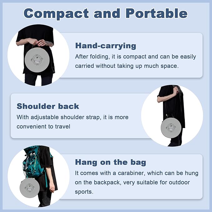 • 【With thickened rotating cushion and carabiner】Considering the comfort, we have matched a soft rotatable cushion so that you can have a comfortable experience even if you sit for a long time. This collapsible stools for adults comes with an adjustable shoulder strap, which can be carried by hand or on one shoulder. You can also use our matching carabiner to hang it on a backpack, which is very convenient to carry when going out.