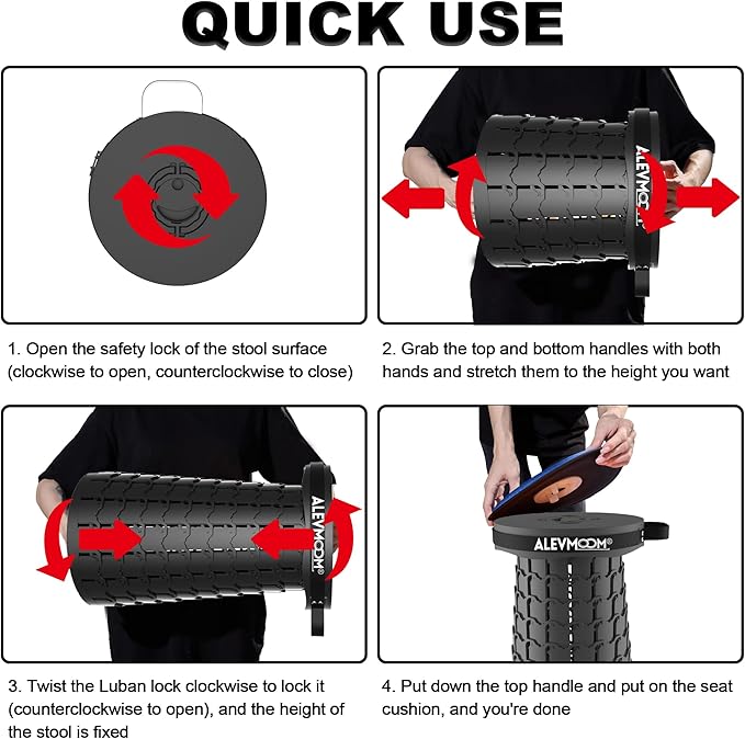• 【Portable & Lightweight for Any Adventure】Despite its robust construction, this telescoping stool remains lightweight at just 3.5 pounds, making it easy to carry wherever you go. Whether you're hiking, fishing, camping, or attending an outdoor event, this collapsable stool is the perfect choice for your travels. Its compact design ensures it fits effortlessly into your gear, saving space without compromising on strength or comfort.