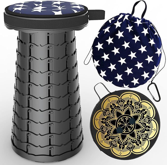 ALEVMOOM Upgraded Telescoping Collapsible Stool with Cushion, Folding Stool with Printing Portable Retractable Foldable Seat Max Load 550lbs for Adults Camping Fishing Outdoor