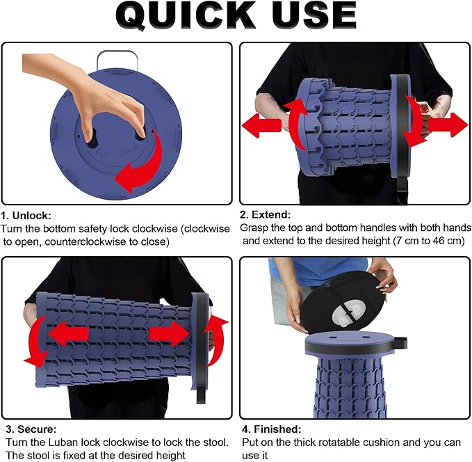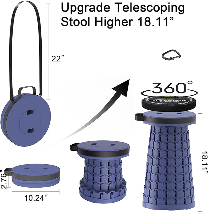 • ✨【US Patent Design】This collapsible stool features a US patented design with a smooth fish-scale structure for seamless opening, closing, and secure locking. Its innovative telescoping mechanism offers adjustable height and user-friendly operation, making it a top choice as a portable folding stool for daily and outdoor use