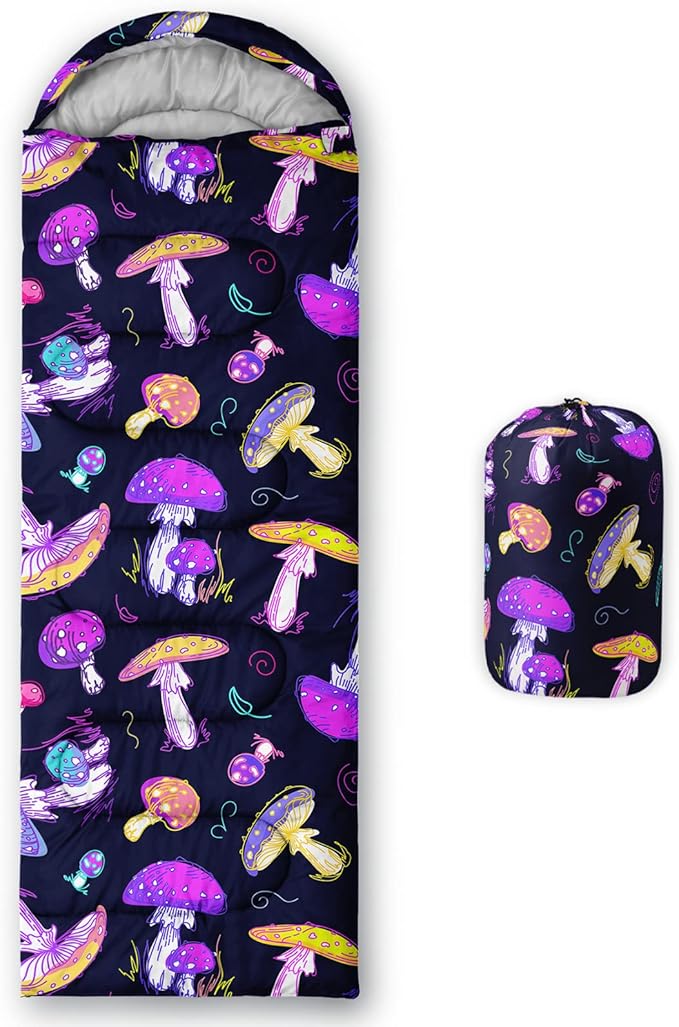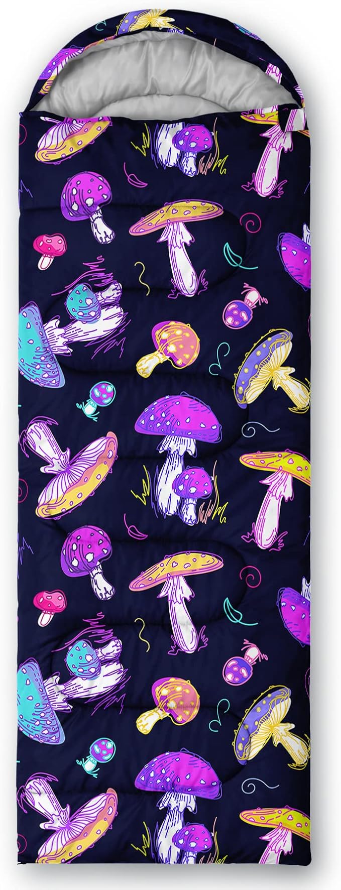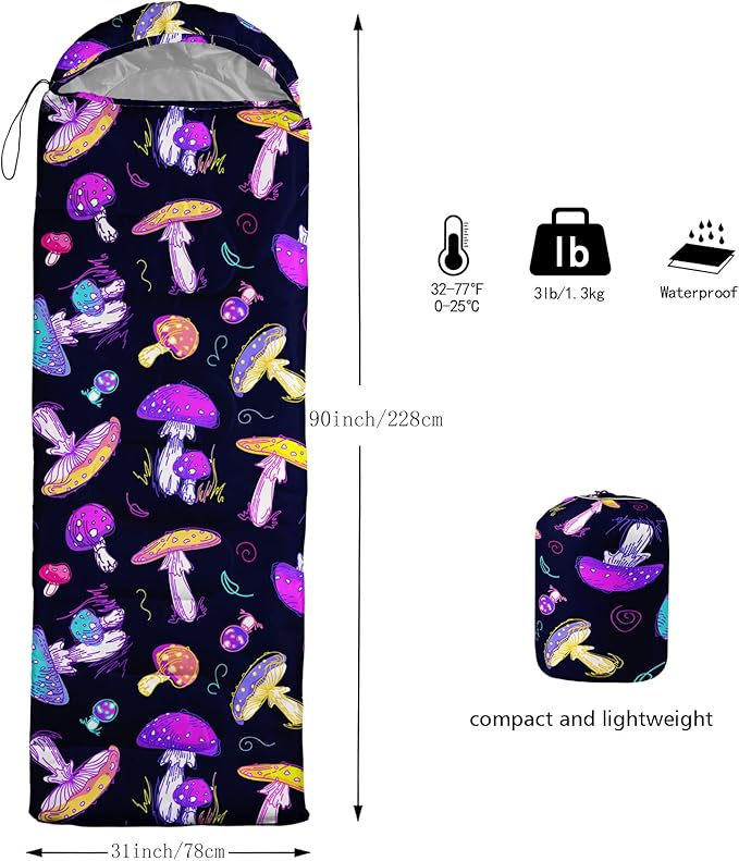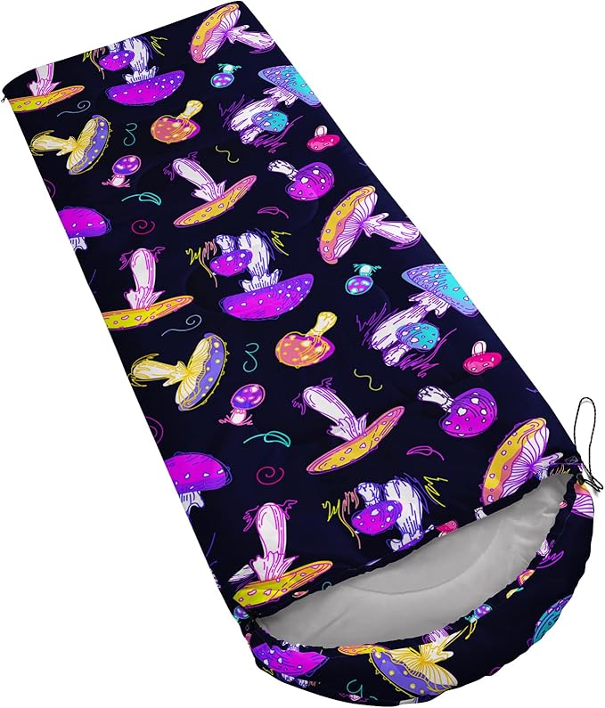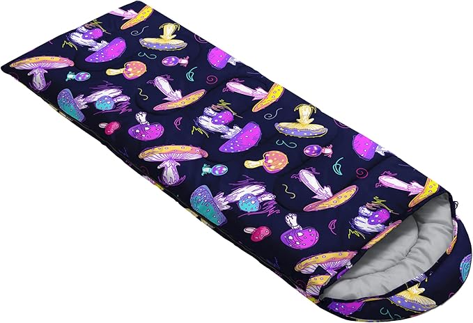 • A THOUGHT OUT DESIGN: Drawstring allows you to tighten hood and keep you warm. The idea of having a zipper at the foot to allow more warm or cool air to enter or exit the bag in different times of the season.Our Purple Mushroom sleeping bags are designed to provide much needed rest after a full day of outdoor activities.
